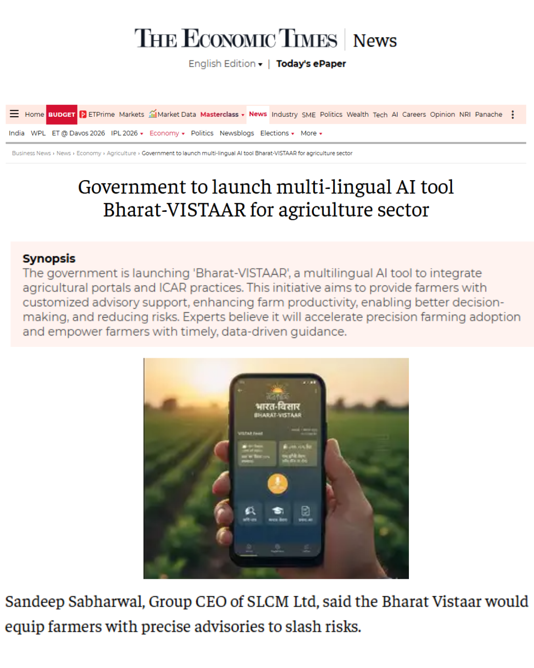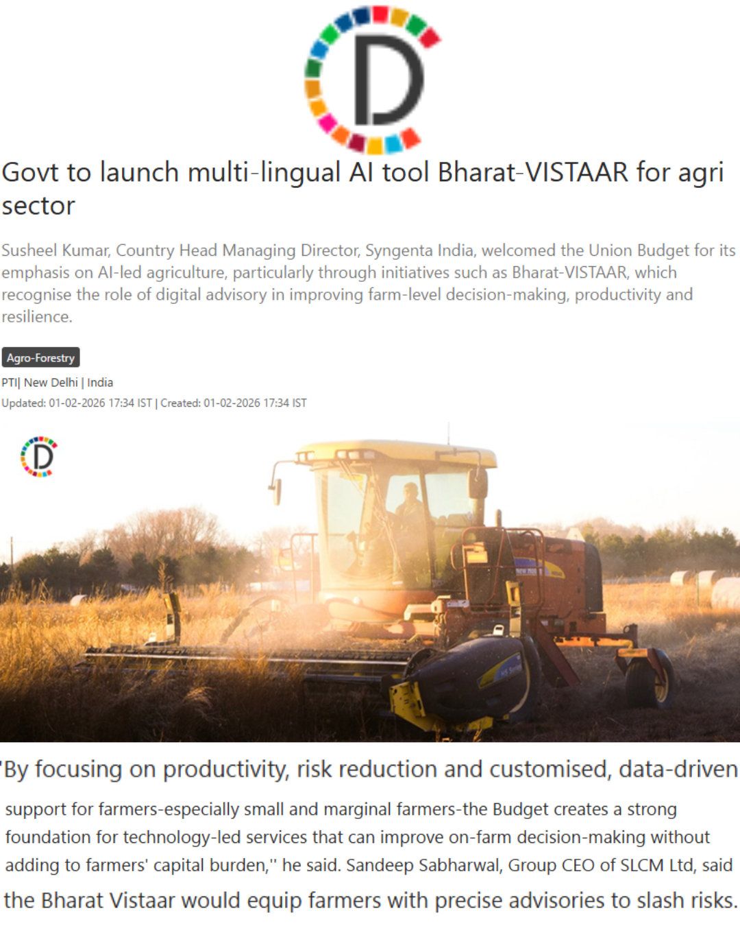 Devdiscourse: Govt to launch multi-lingual AI tool Bharat-VISTAAR for agri sector