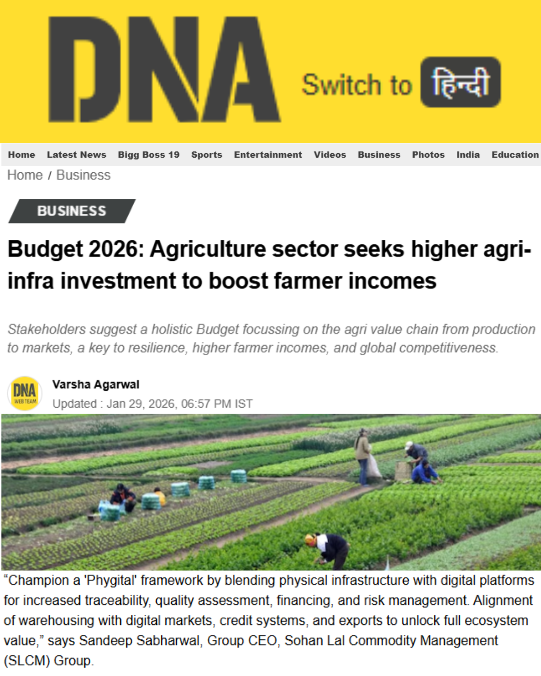 DNA India: Budget 2026: Agriculture sector seeks higher agri-infra investment to boost farmer incomes